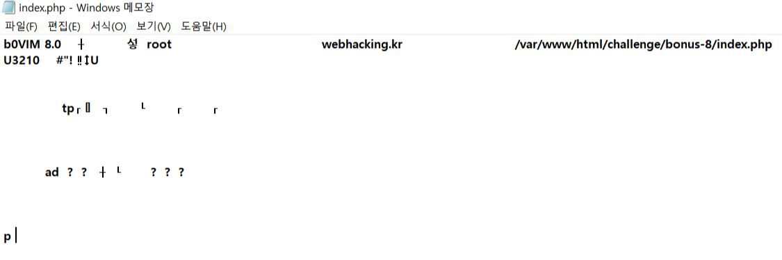 그래서 우리는 일단. index.php.swp를 추가하여 입력해보자.