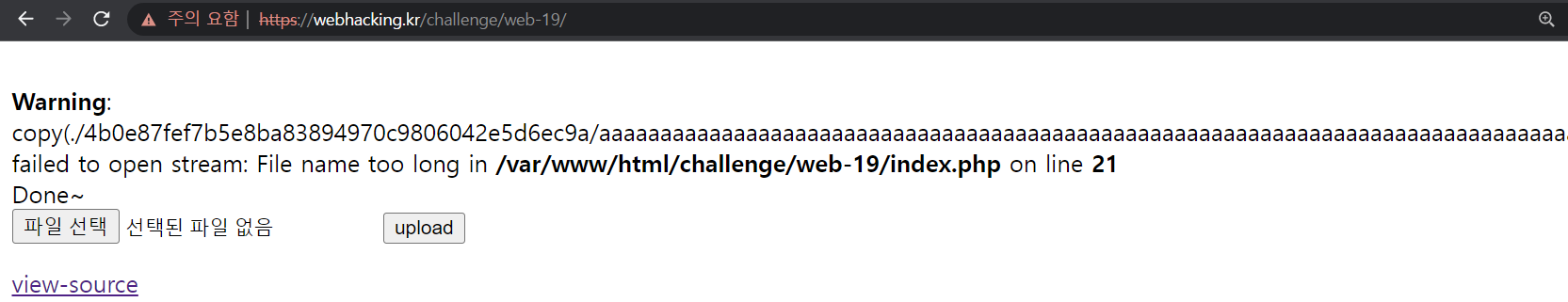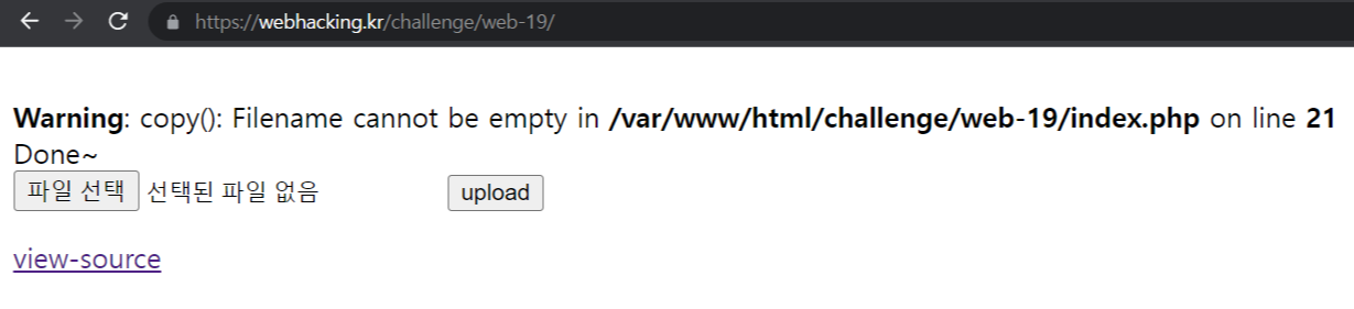 아까 전에 알아낸 에러 메시지 출력 부분을 이용해 $upload_dir 부분을 알아내 보자.