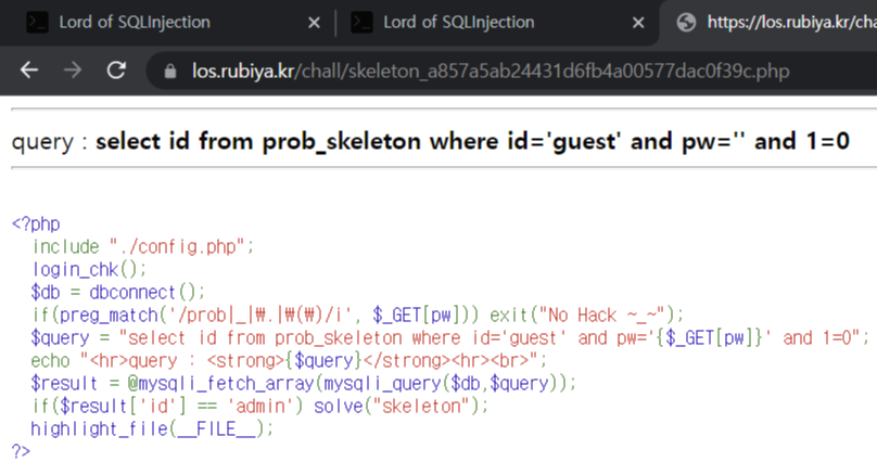 'SQL injection > lord of SQL' 카테고리의 다른 글