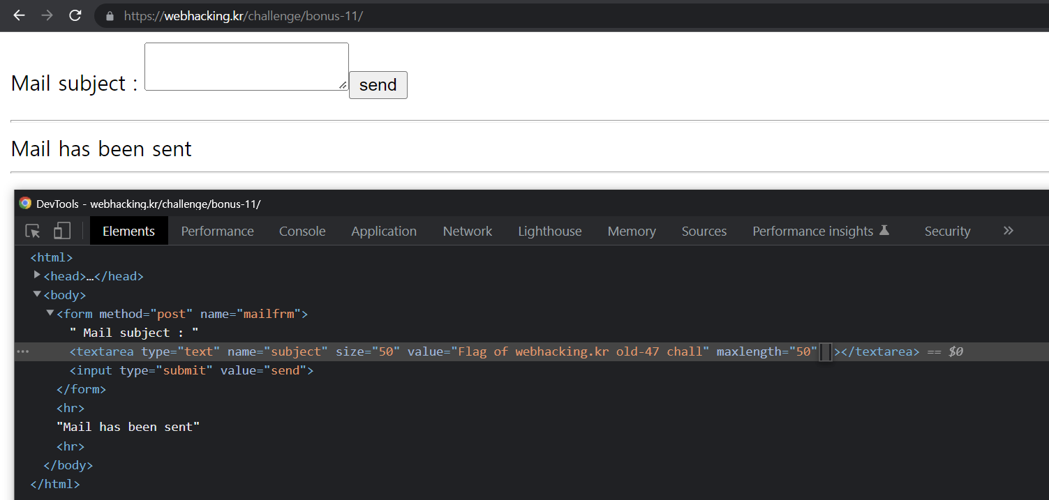 옛날에 문제를 푼 사람들의 글을 찾아보면, 자신의 이메일에 auth값을 받아 문제를 해결했다고 하는데, 필자가 푸는 시점에서는 그냥 flag가 웹 페이지에 뜬다.