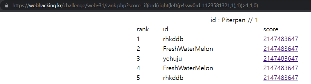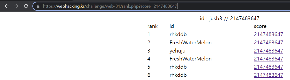 점수 중 하나를 눌러보니 get파라미터로 score을 받는다는 사실을 알 수 있었다.