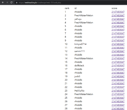 rand, id, score순으로 출력되어있는 페이지가 나온다.