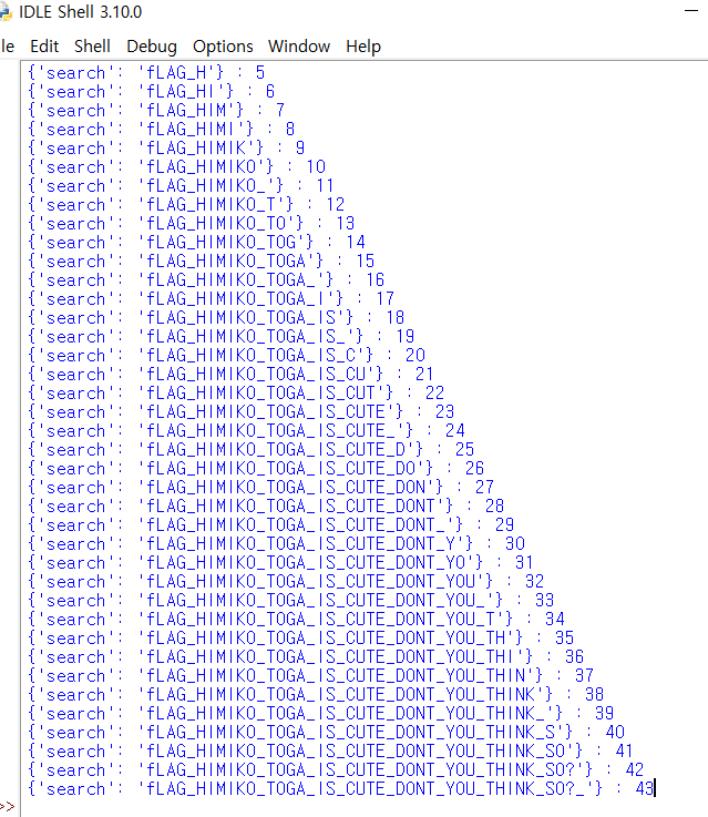 추출된 flag : fLAG_HIMIKO_TOGA_IS_CUTE_DONT_YOU_THINK_SO?_