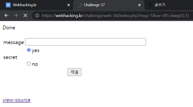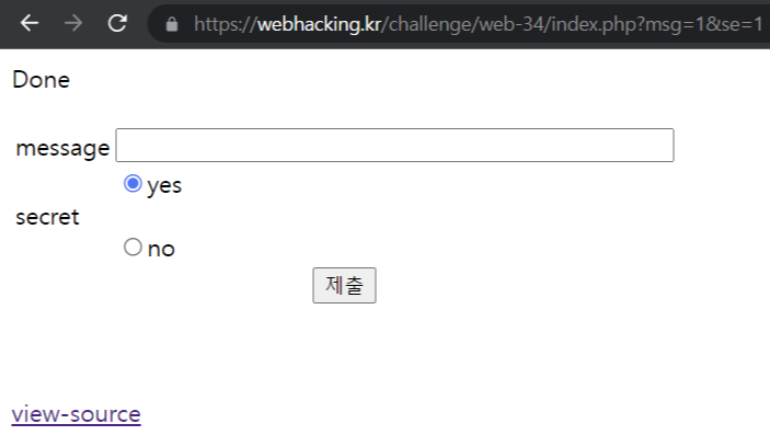 파라미터로 msg, se를 받으며 secret이 yes 일 때 1, no일 때 0으로 입력된다.