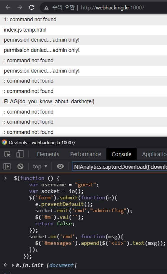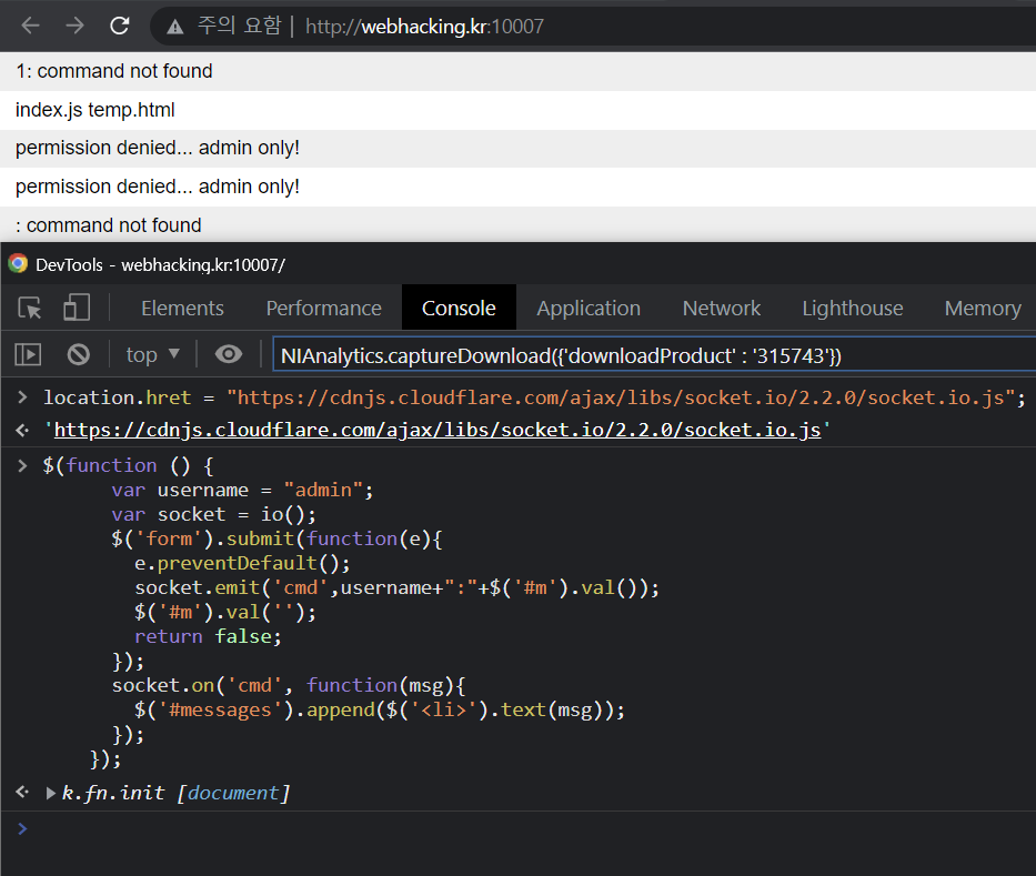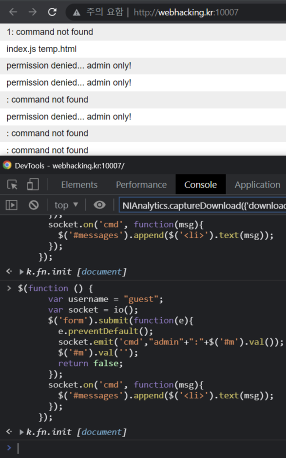 음... 커맨드를 일단 2개로 인식하였으며 admin이 정상적으로 수정된 것 같지 않다.