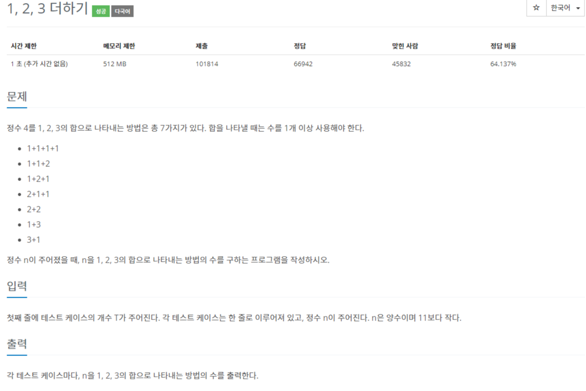 백준 9095를 검색창에 입력 후 엔터키를 눌렀다.