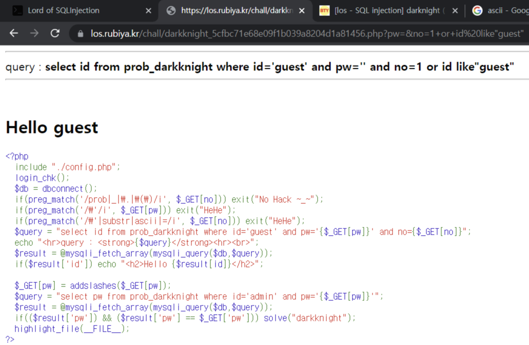 이제 admin 의 pw 값을 알아내면 되는데 substr과 ascii 가 필터링되어있다.