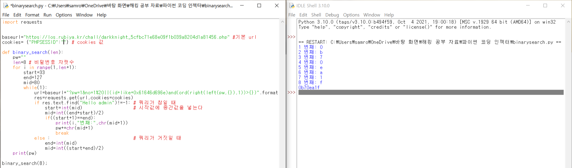 이제 blind sql로 pw 값과 no 값을 알아내면 된다.