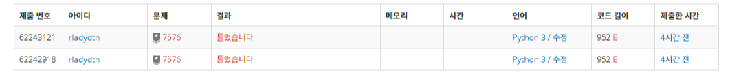 # print(array[i],end='\n') # 토마토 익은 후 배열