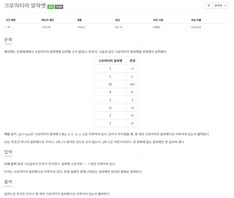 알파벳 + 크로아티아 알파벳의 개수를 출력하면 되는 문제이다.
