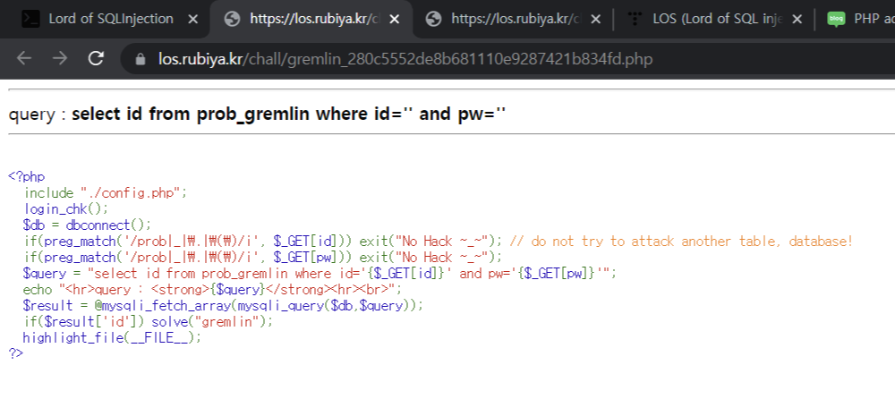 'SQL injection > lord of SQL' 카테고리의 다른 글