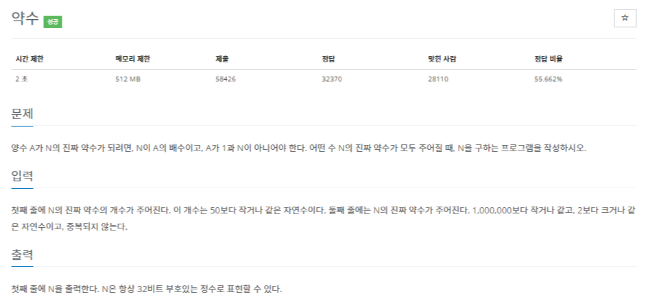 또한, 주어진 약수중, 가장 작은 약수와 가장 큰 약수의 곱이 원래 값이다.