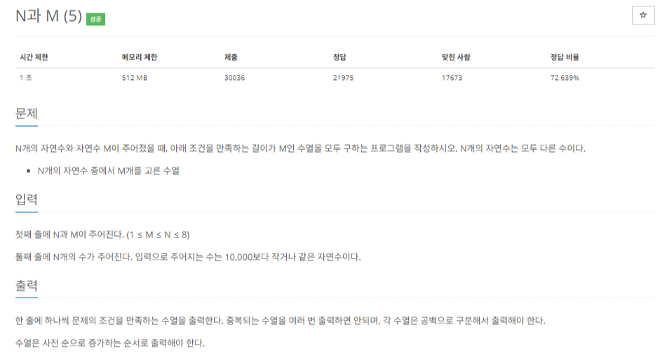 기존에 풀었던 n과 m 4번 코드에서 조금의 변형을 주었다.