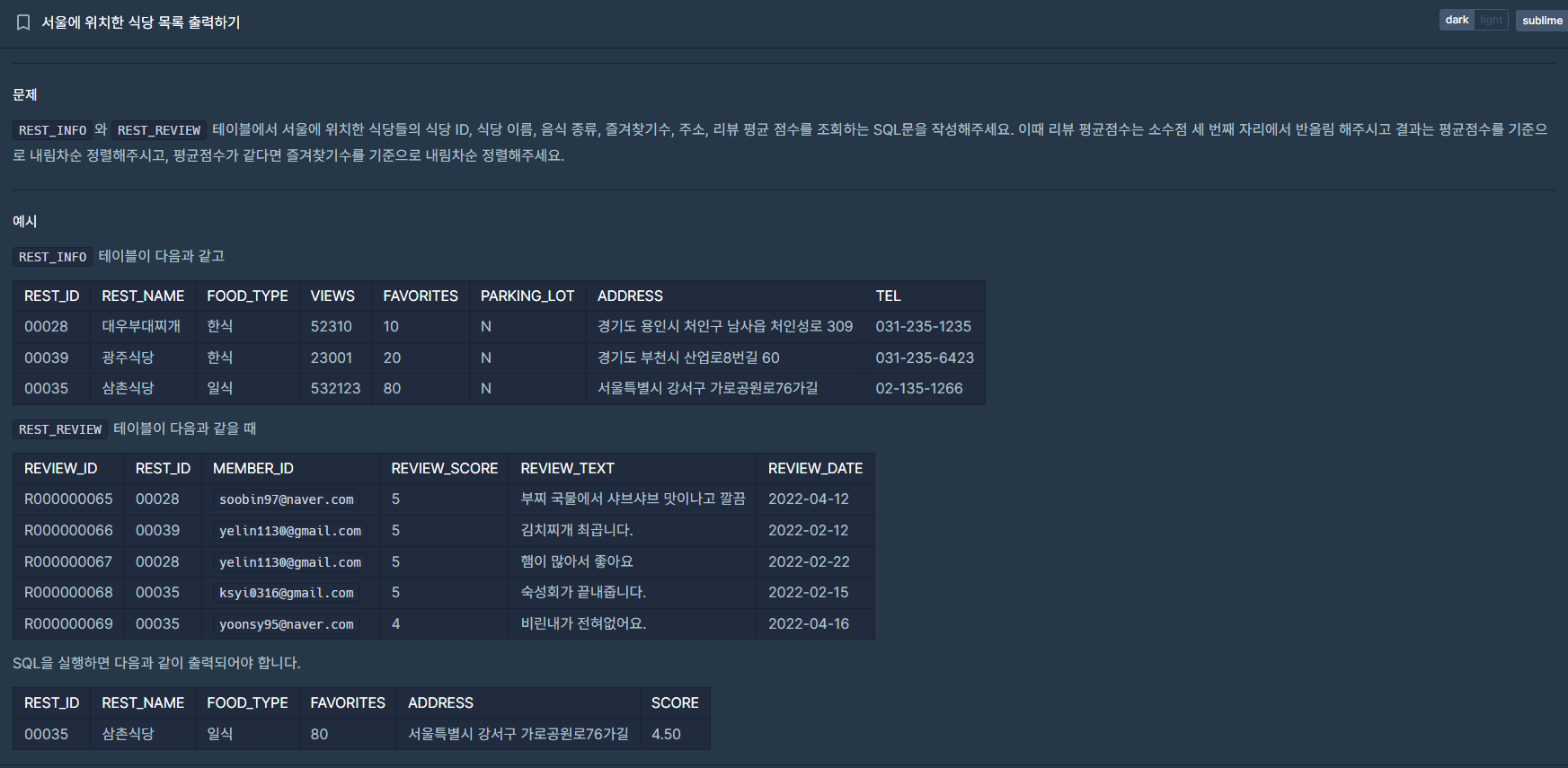 | [프로그래머스] 가격이 제일 비싼 식품의 정보 출력하기 (2) | 2023.12.21 |