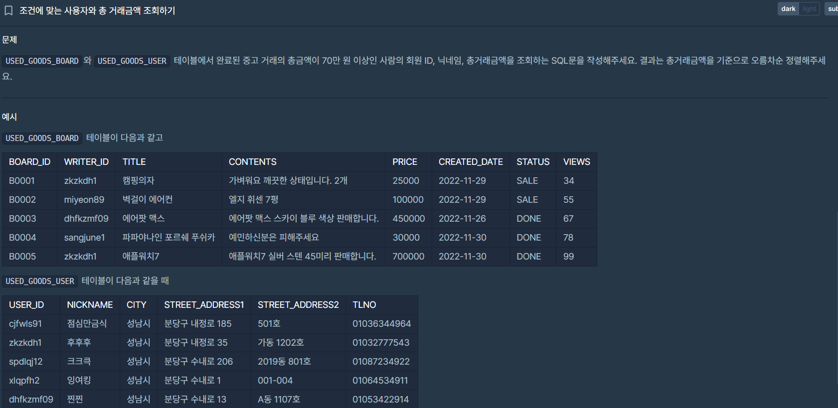 이번 문제는 group by사용을 익히기 위한 문제이다.