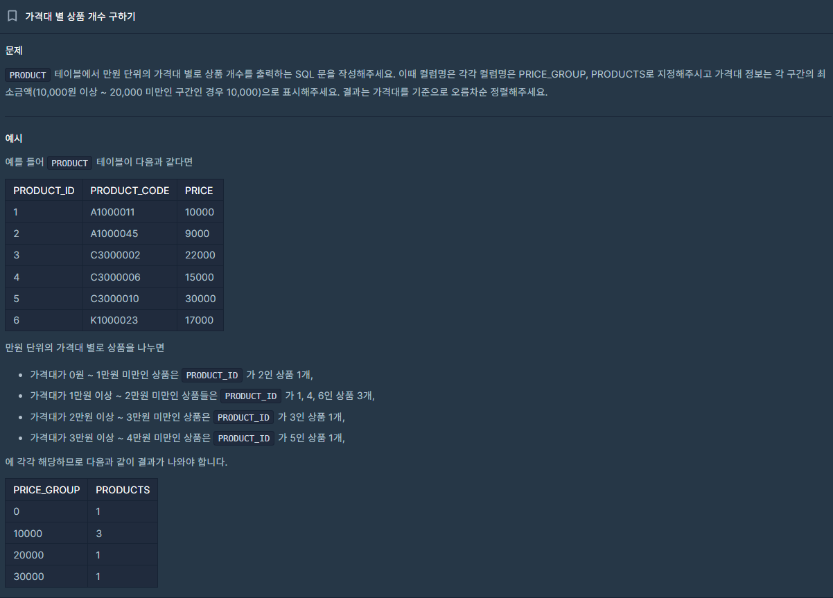 [프로그래머스/Oracle] 가격대 별 상품 개수 구하기