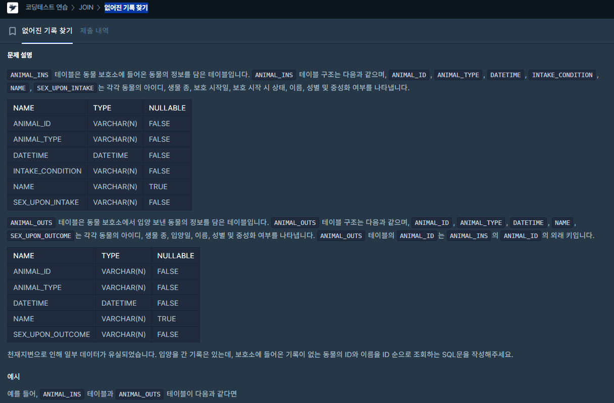 [프로그래머스] 오랜 기간 보호한 동물(1) (120) | 2024.02.16 |