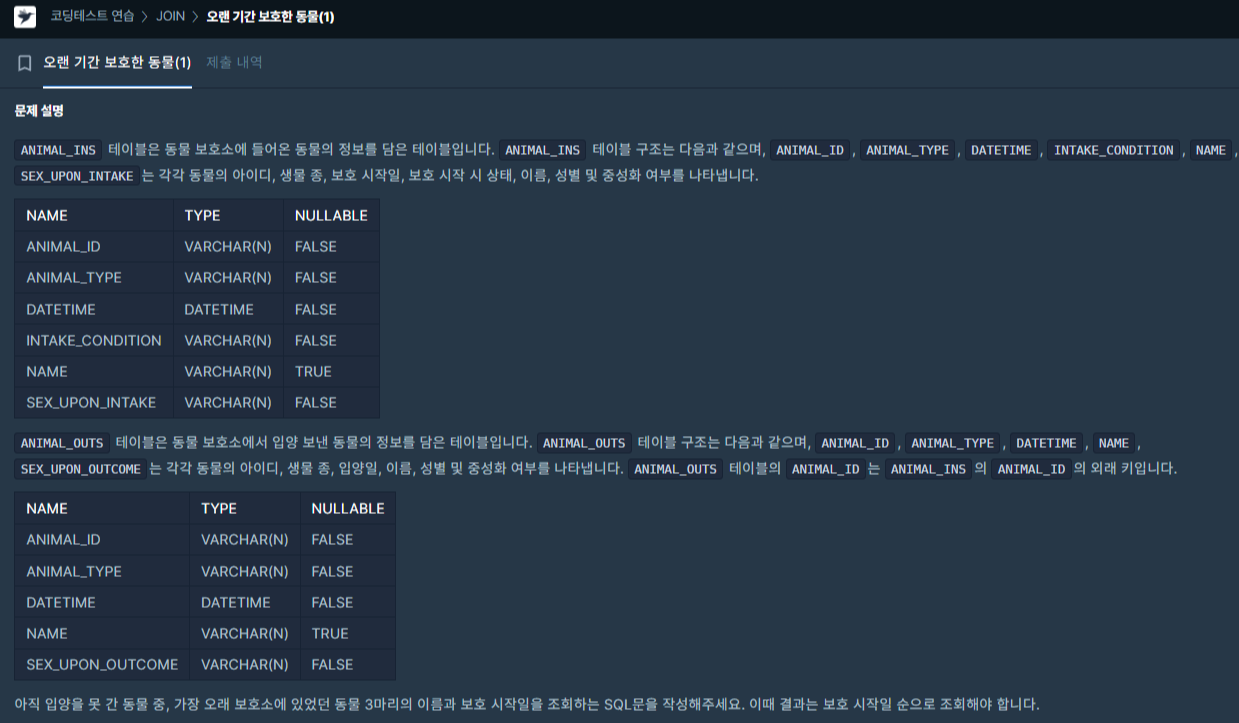 INS 테이블에 OUTS 테이블을 LEFT JOIN으로 붙인 후, OUTS 칼럼값이 비어있는 데이터를 고르면 원하는 정보를 불러올 수 있다.