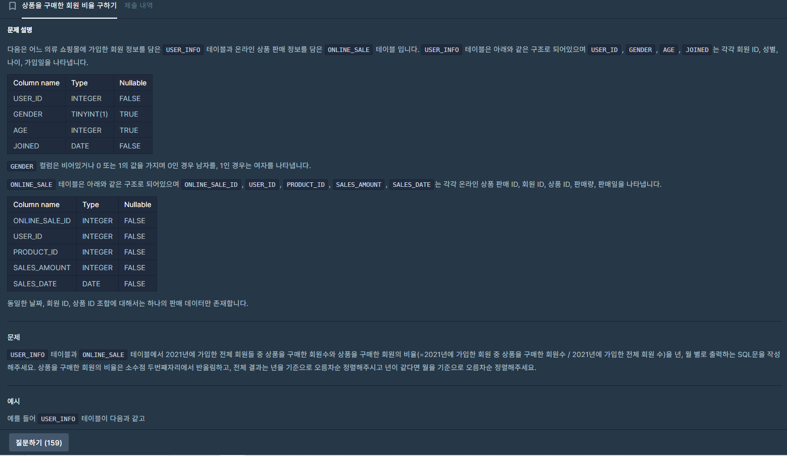 - 프로그래머스 상품을 구매한 회원 비율 구하기
