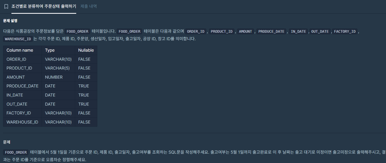 WHEN TO_CHAR(OUT_DATE,'YYYYMMDD') <= '20220501' THEN '출고완료'