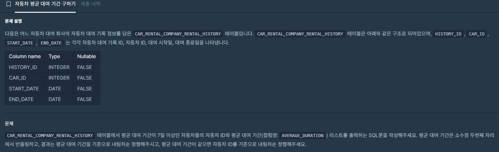 SELECT CAR_ID, ROUND(AVG(TO_DATE(END_DATE) - TO_DATE(START_DATE) + 1),1)