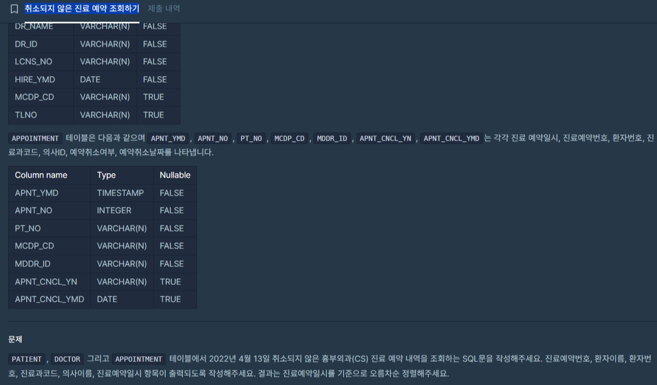 SELECT A.APNT_NO, P.PT_NAME, P.PT_NO, D.MCDP_CD, D.DR_NAME, A.APNT_YMD
