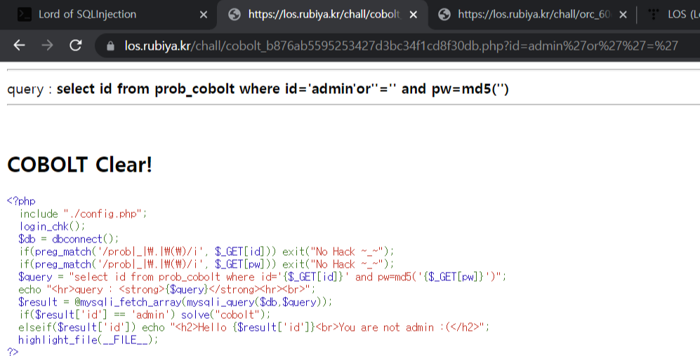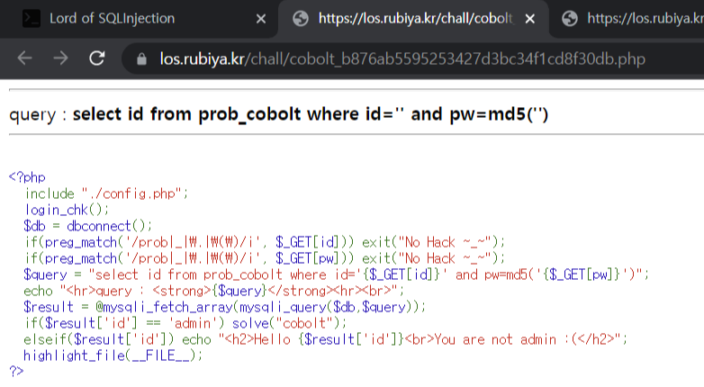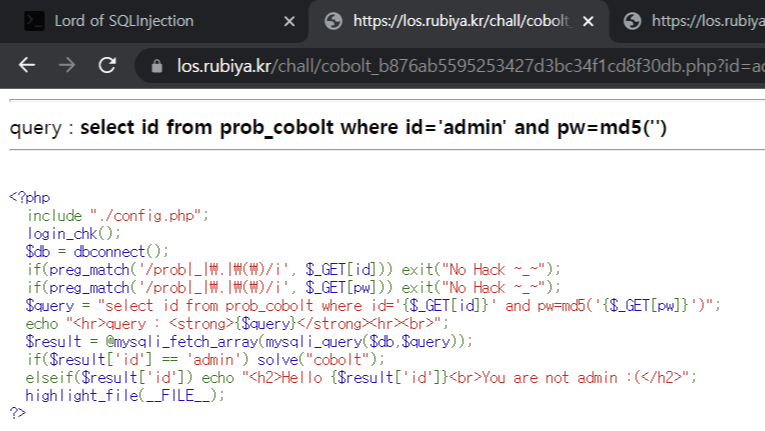 'SQL injection > lord of SQL' 카테고리의 다른 글