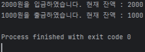 System.out.println(a + "원을 입금하였습니다. 현재 잔액 : " + money);