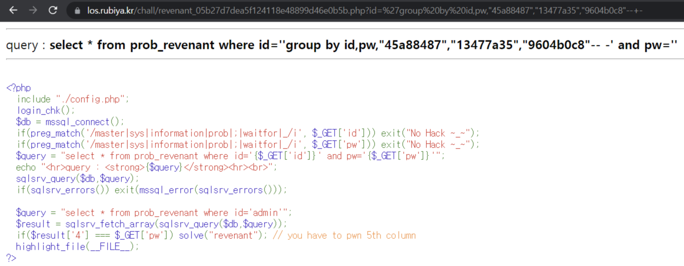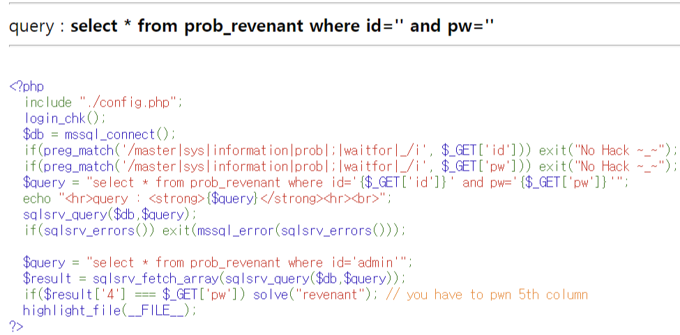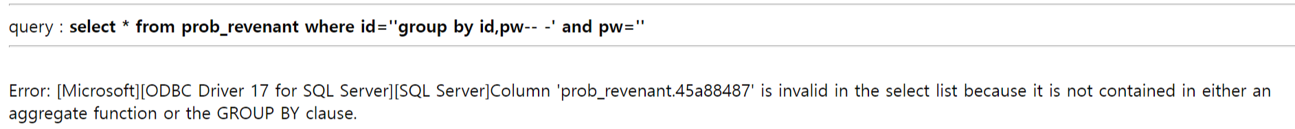 id와 pw를 파라미터로 받고 에러를 출력해주며 메타데이터와 시간 기반 주입을 하지 못하게 필터링되어있다.