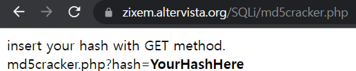 hash를 파라미터로 md5암호화 문자열을 입력하면 결과를 반환해준다.