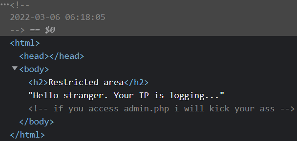 하지만 주석 부분에 admin.php에 접근 시 혼내준다는 문구가 보인다.