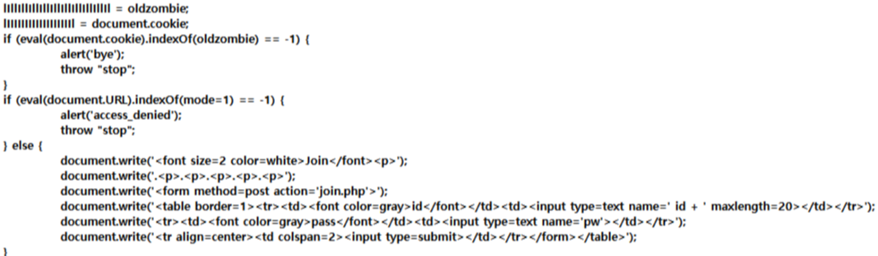 if구문을 보면 document.cookie 부분에 oldzombie라는 값이 없으면 bye를 출력한다.