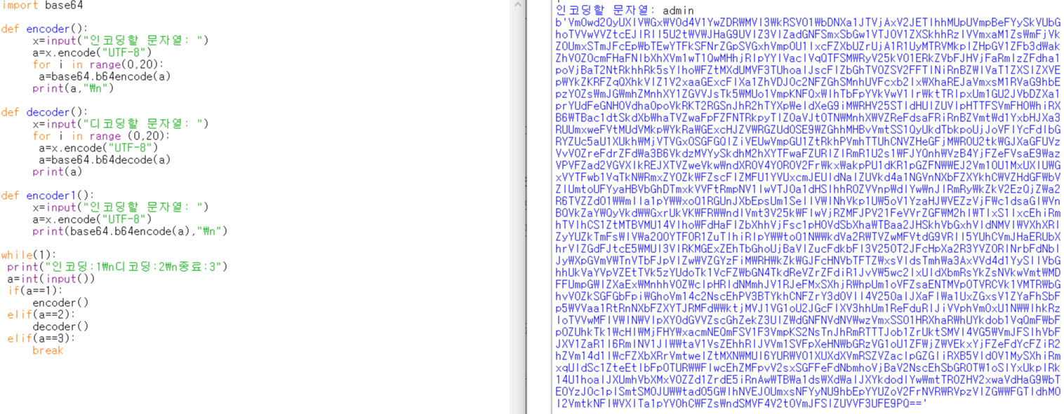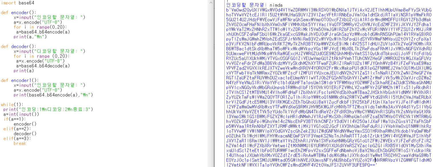 1. python에서 20번 인코딩하는 코드를 만드는데 조금 헤맸다.