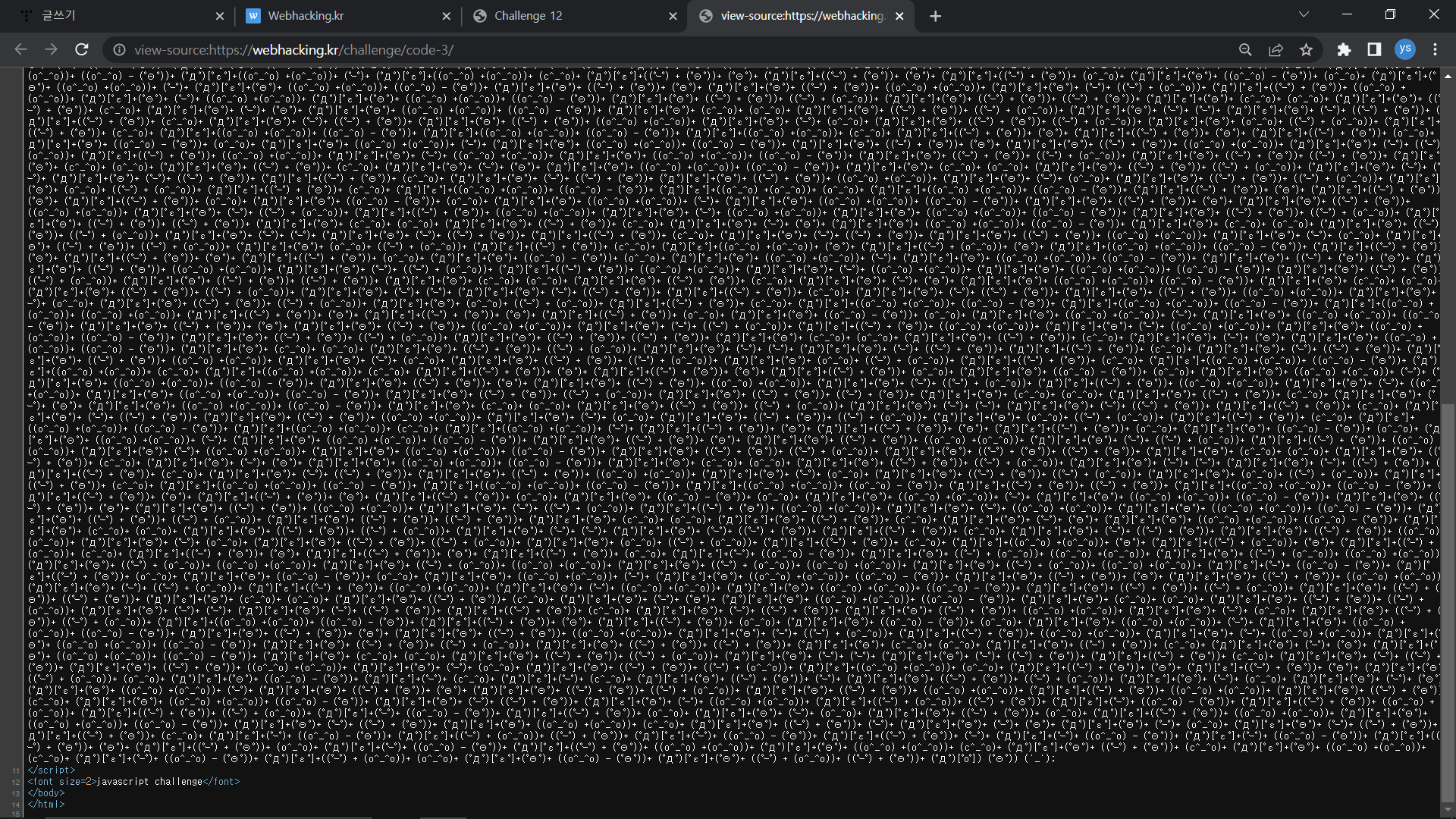 개발자 도구로는 다 표시되지 않을 정도의 양으로 난독화가 된 코드가 들어가 있다.
