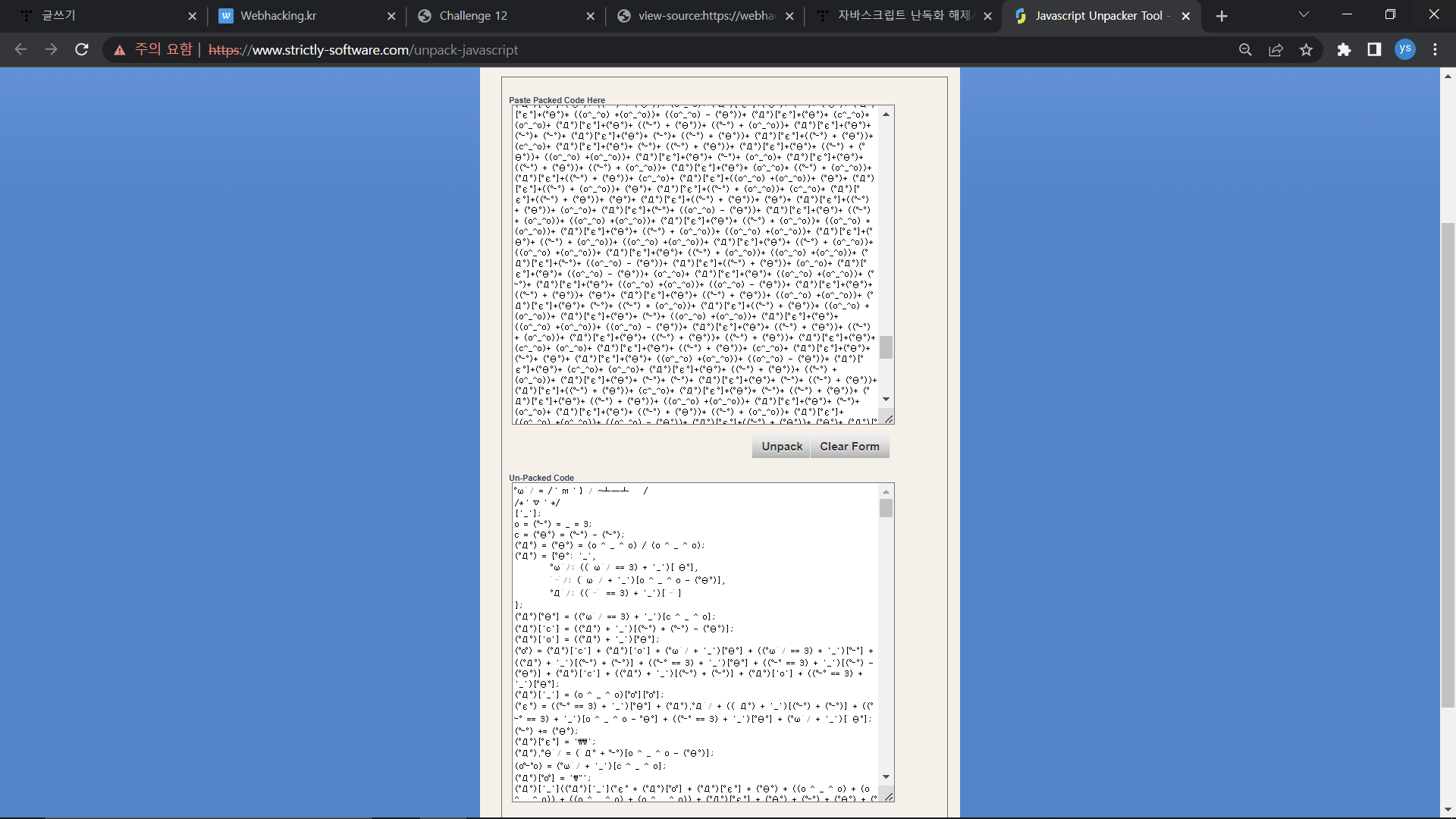 일단 난독화 해제 사이트에서 난독화를 해제시켜주자.