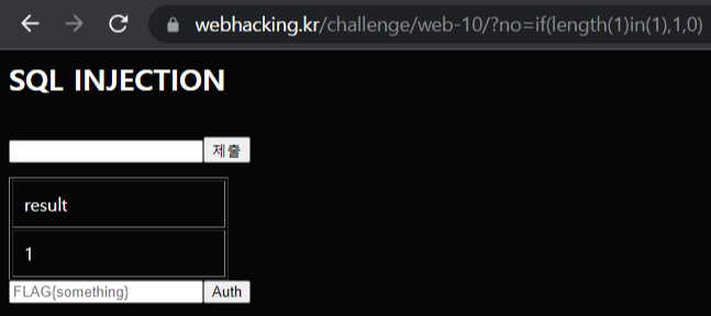 쿼리 : ?no=if(len(1)in(1),1,0)