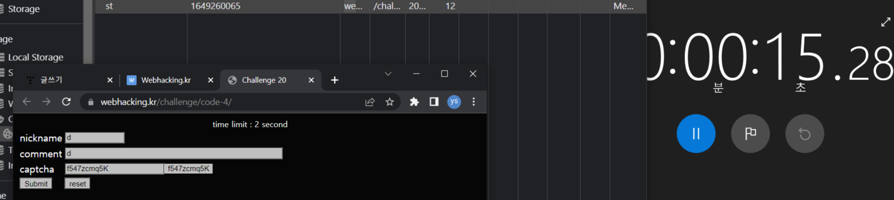 따라서 우리는 문제를 풀기 위해 빈칸을 채우고, st부분을 페이지 리다이렉션 후 완료까지 시간을 2초 오차 이내로 변조하면 문제를 풀 수 있다.